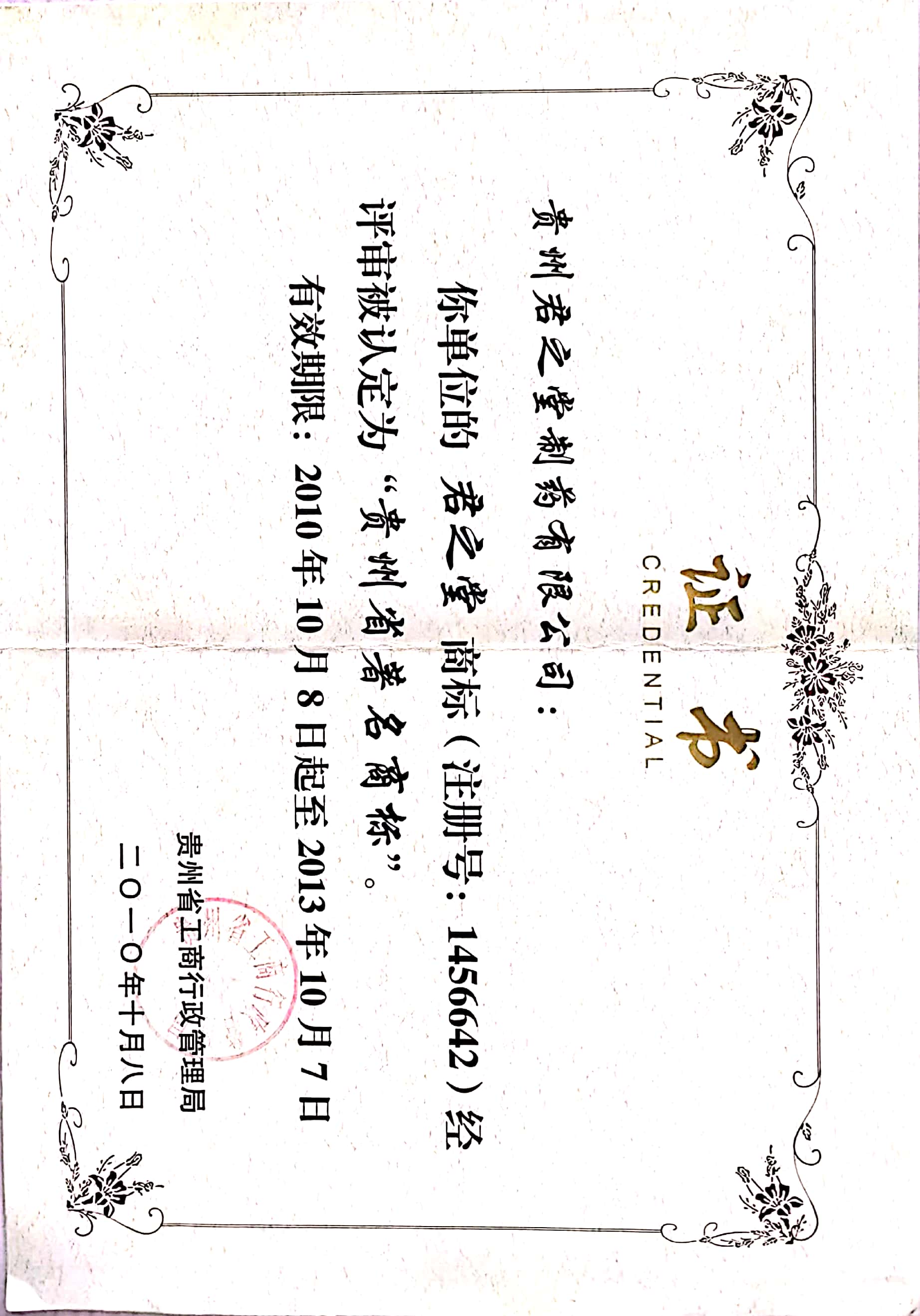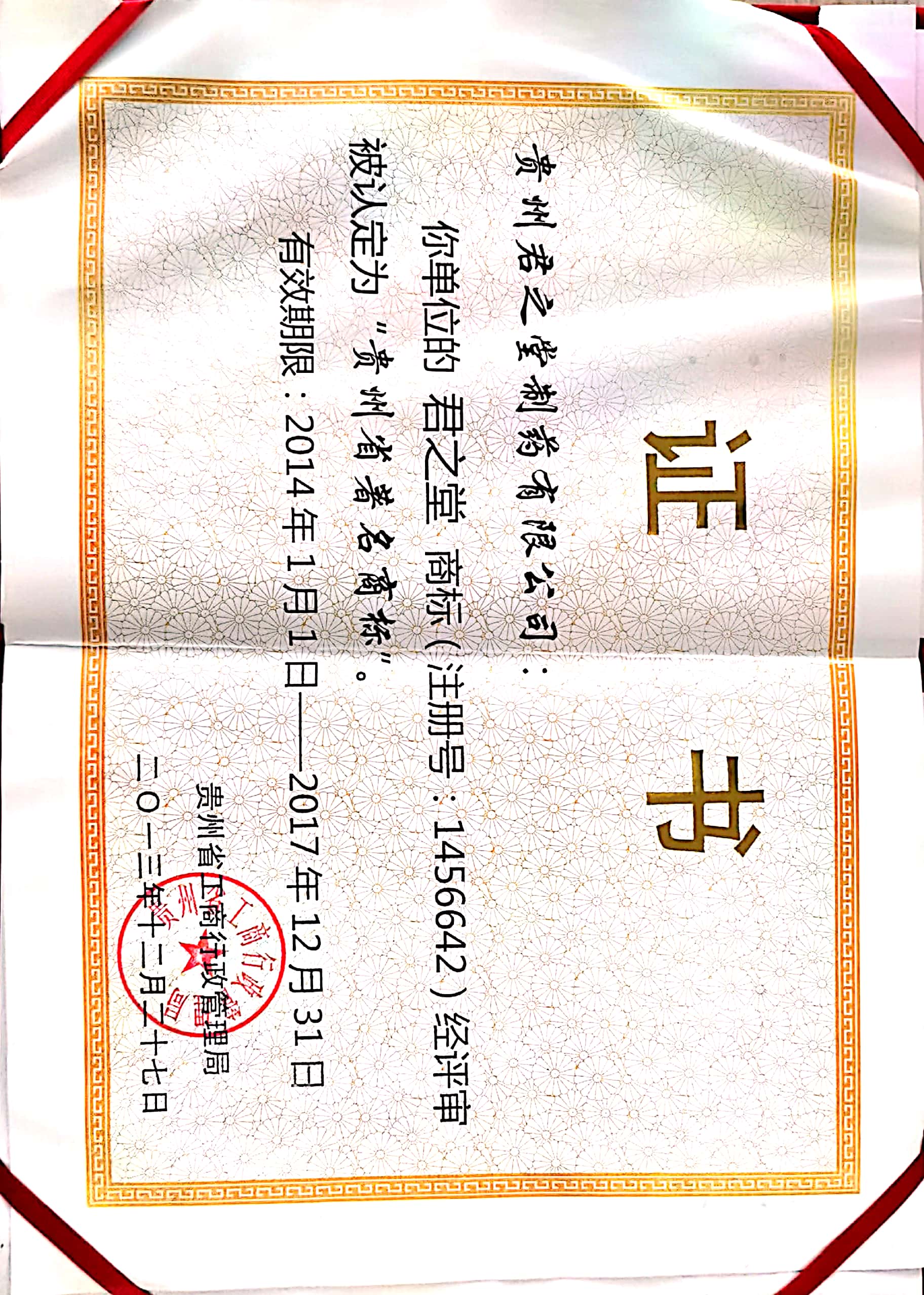 君之堂-贵州省著名商标
