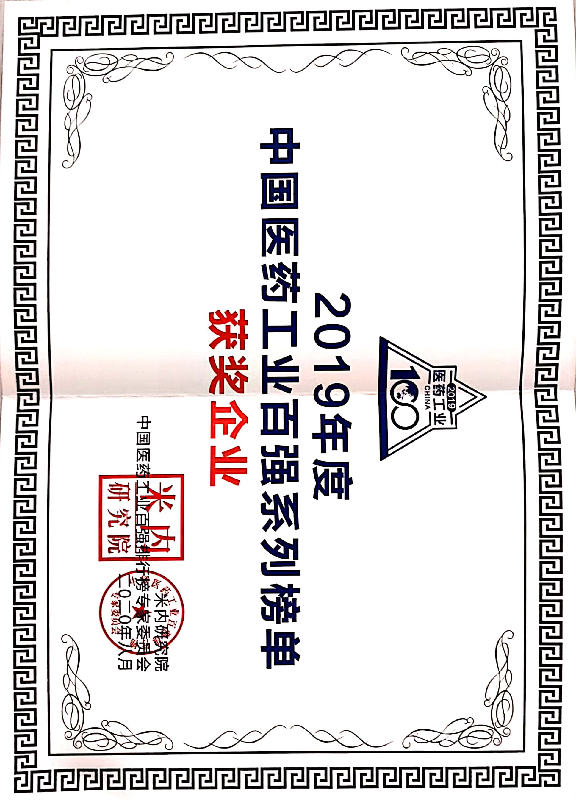 2019中国医药工业百强系列榜单