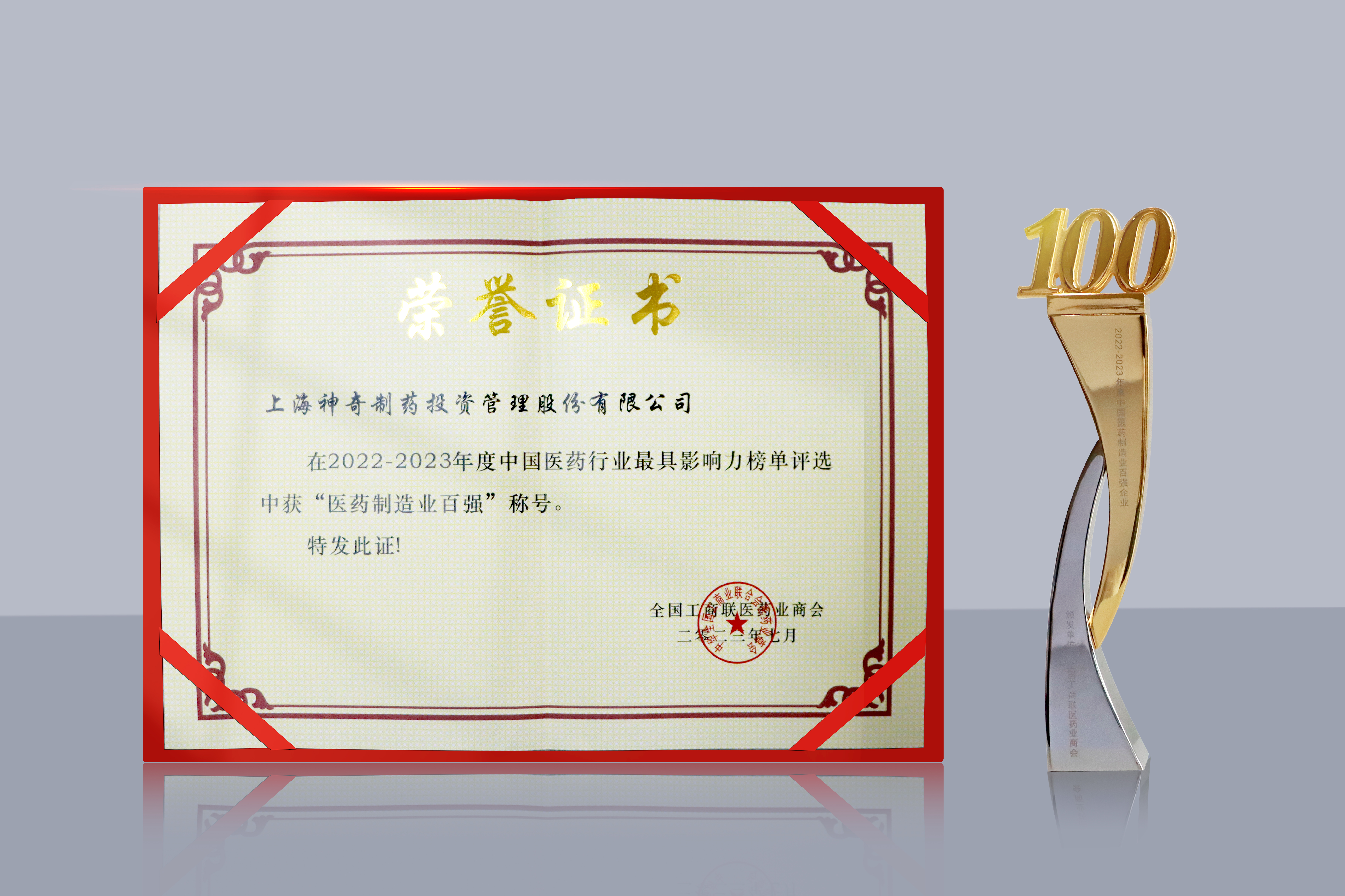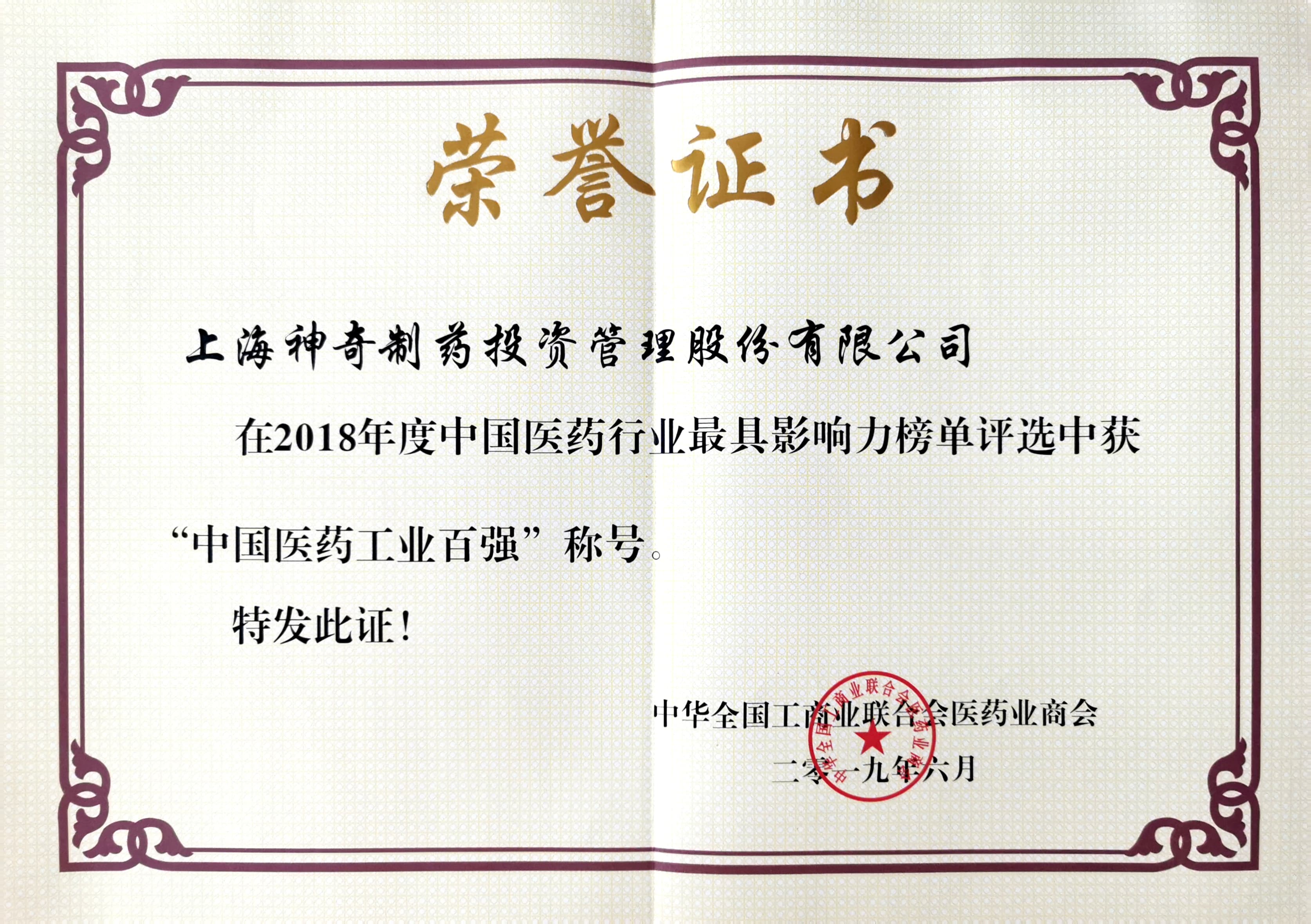 上海神奇制药投资管理股份有限公司 “中国医药工业百强”称号 中华全国工商业联合会医药业商会