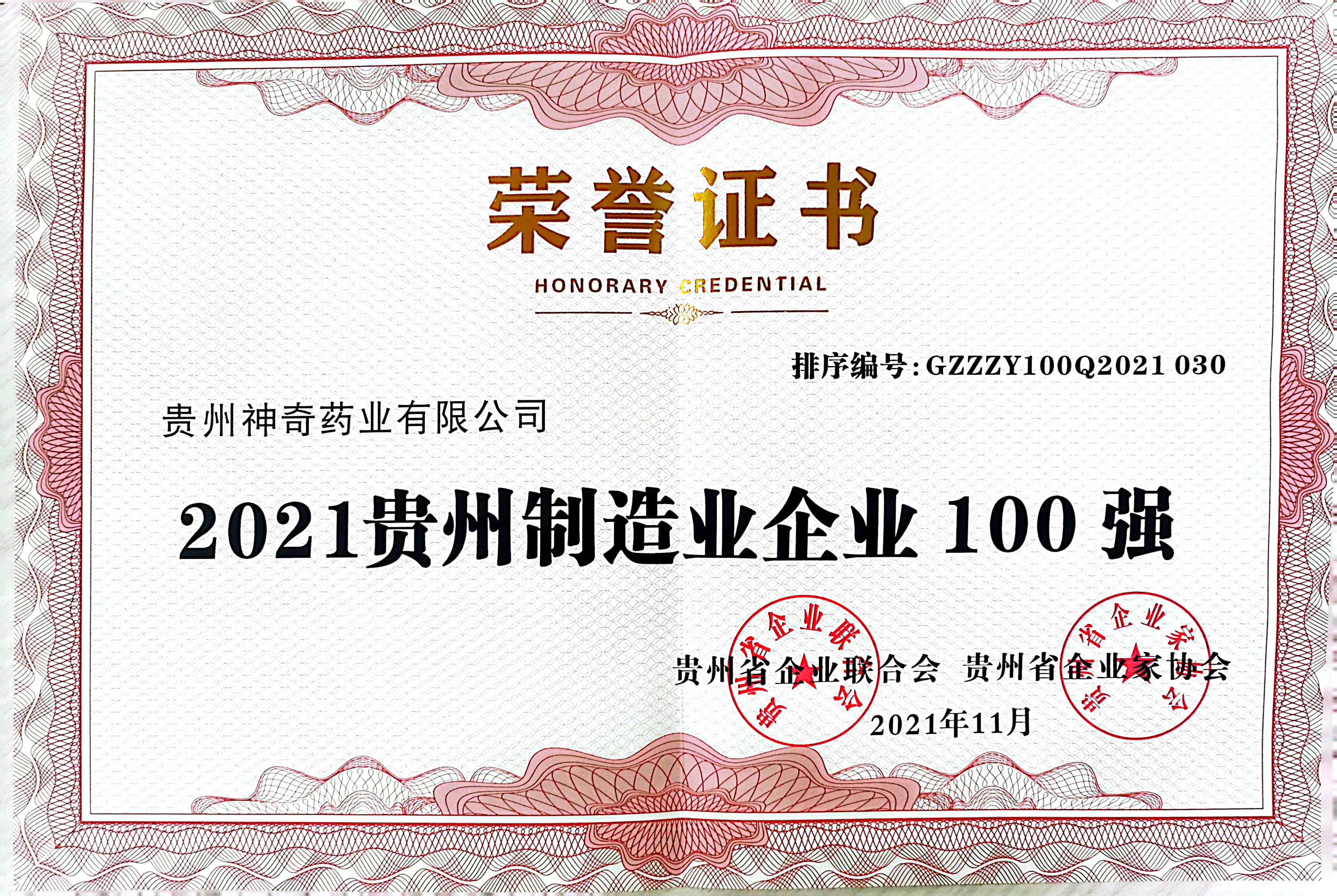 尊龙凯时药业有限公司 2021贵州制造业企业100强 贵州省企业联合会 贵州省企业家协会